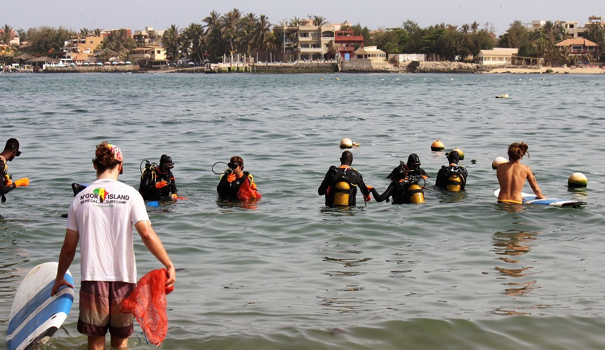Une véritable opération d’envergure alors que les détritus récupérés au fond de l’eau par les plongeurs du Barracuda Club Dakar et les Sapeurs pompiers de la caserne Malick Sy étaient ramenés sur la rive par l’équipe du N'Gor Island Surf Camp avant d’être pesés et triés sous la supervision des bénévoles de l’International School of Dakar. La plage a été prise d’assaut par les nettoyeurs de Bri Action, Sénégal Propre, les étudiants de l’Institut Universitaire de Pêche et Aquaculture, le Centre Sportif Fayda, les écoles primaires de N'Gor et plusieurs autres collaborateurs et individus venus prêter main forte dans cette action aussi importante. Au total, 765 kg de déchets marins par quatorze plongeurs appuyés par six surfeurs et 820 kg de déchets ramassés sur la plage en 2h.